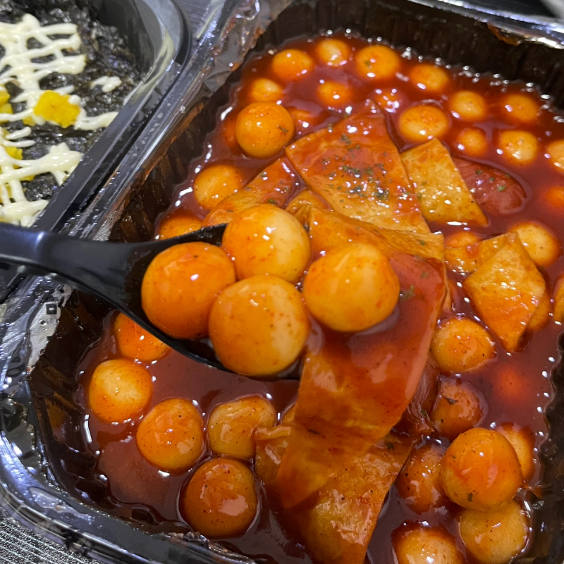 그 다음은 아주 매콤한 떡볶이 인데 떡 종류를 이렇게 동글동글한 떡으로 선택했다. 그 결과는 아주 대만족 떡이 길지 않아서 한입에 먹기가 아주 편했다. 그리고 국물이 맹맹하지 않고 간간하고 달콤하고 매콤하니 아주 입맛이 뒤지게 돌정도로 맛있었다.