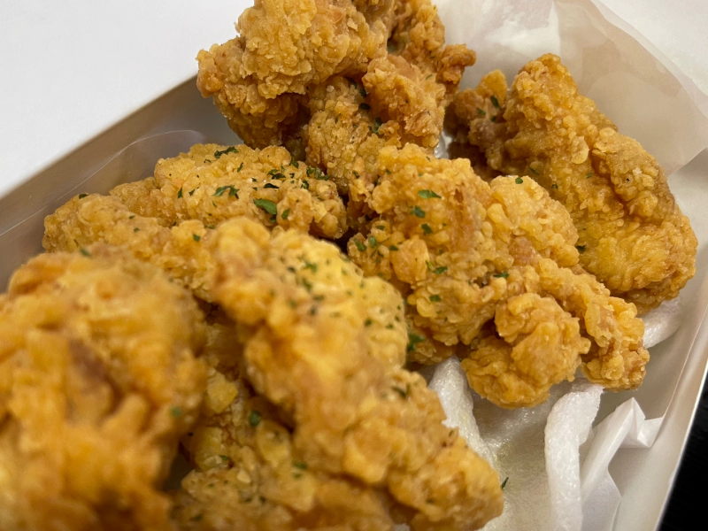 먼저 스몰한 사이즈의 치킨? 치킨너겟? 아무튼 아주 먹음직스러웠다 가장 중요한건 싼마이 치킨 종특인 누린내가 나지 않아 아주 맛있게 먹었다.