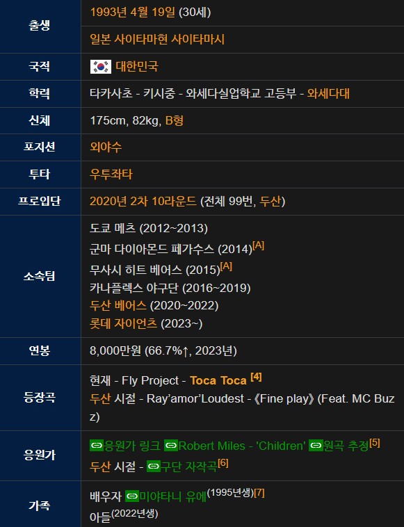 야구선수 안권수 나이 국적 군대 부인 연봉 프로필