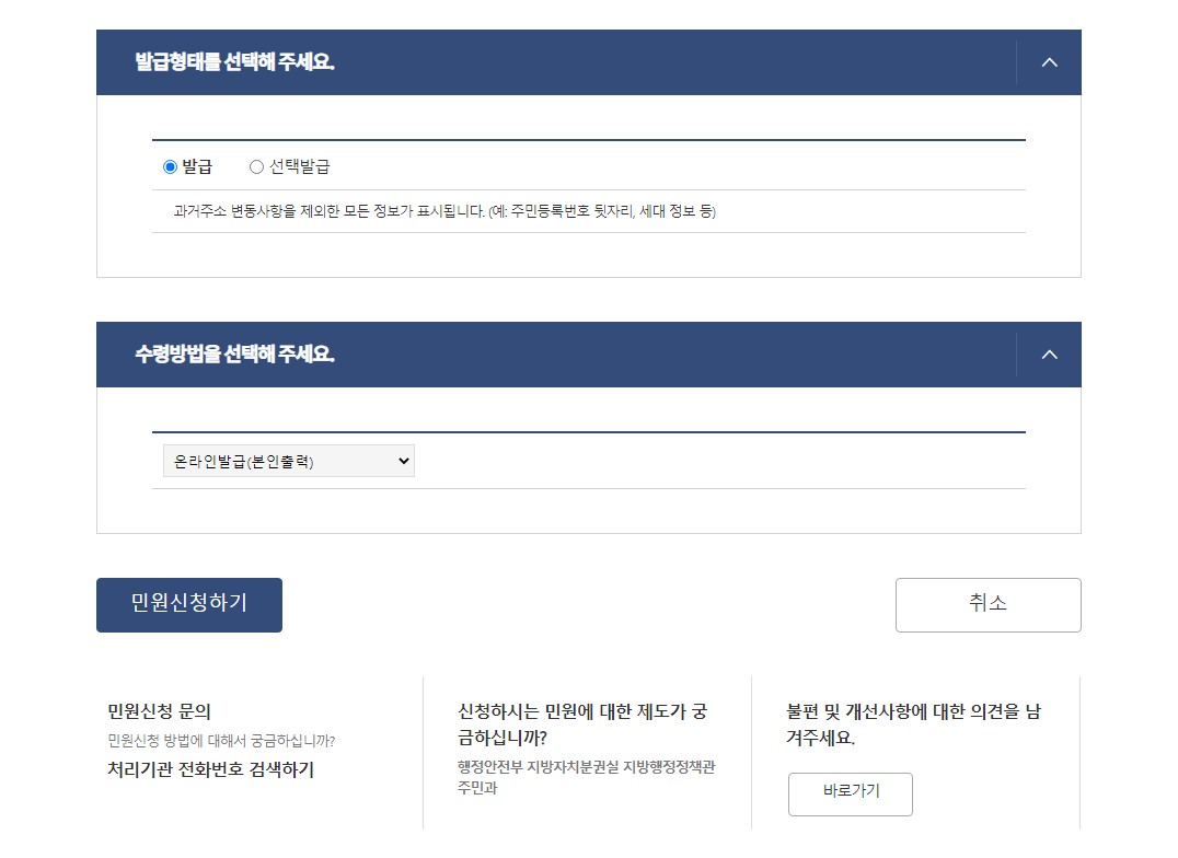 5. 이제부턴 순서대로 내가 원하는 옵션을 체크하고 민원신청을 하면된다 어렵지않다 그냥 읽어보고 선택하면된다.