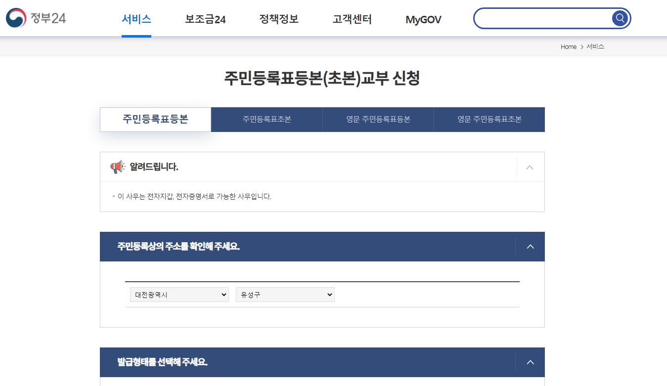 주민등록등본 인터넷발급