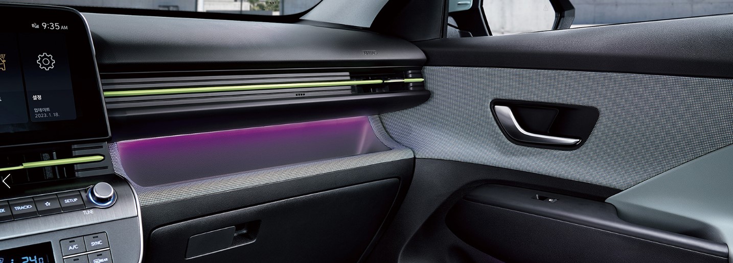 코나는 이번 풀체인지를 통해 기존 대비 각각 145mm, 60mm 늘어난 전장(4,350mm)과 휠베이스(2,660mm)를 기반으로 동급 최고 수준의 2열 레그룸과 숄더룸을 갖췄습니다.
