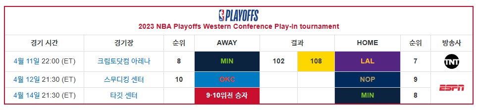nba 플레이오프 일정 방식 대진표 플레이 인 토너먼트